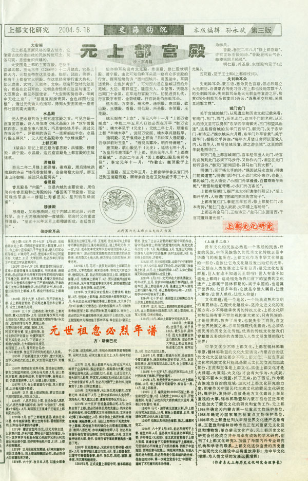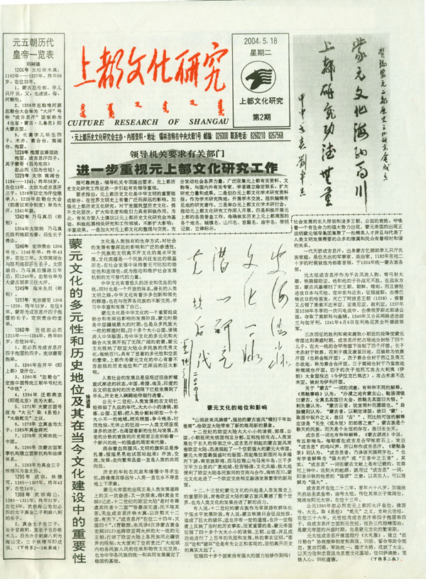 | 百年古都 | 学术研究 | 上都文化 | 上都研究 | 地方学研究 | 史海钩沉 | 蒙元风云 | 上都河文学 | 研究会 | 图片欣赏 |